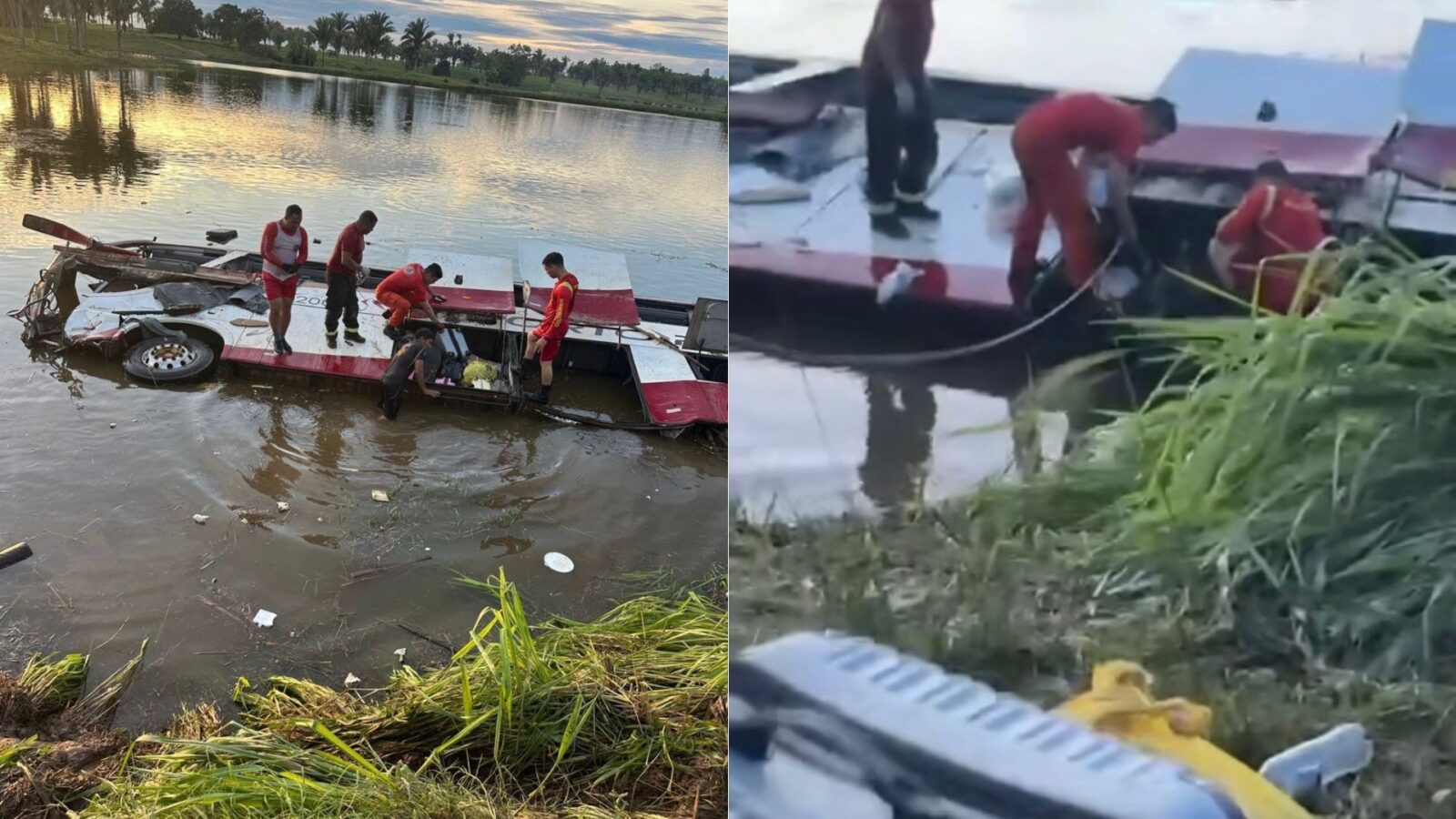 Ao tentar desviar para evitar a colisão, o motorista do coletivo perdeu o controle da direção, saiu da pista e caiu em um açude às margens da BR‑222, onde o veículo ficou tombado lateralmente.