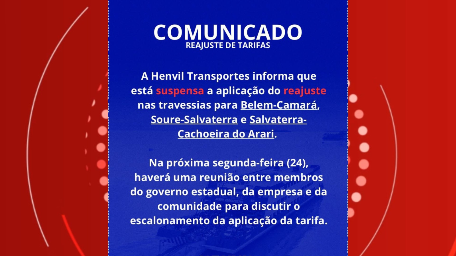 Depois de cinco dias de tensão e protestos de quilombolas, caminhoneiros e moradores do Marajó, arquipélago no Pará, contra o aumento nos preços das passagens de balsas, a empresa responsável pelo transporte suspendeu nesta quinta-feira (20) o reajuste dos valores.