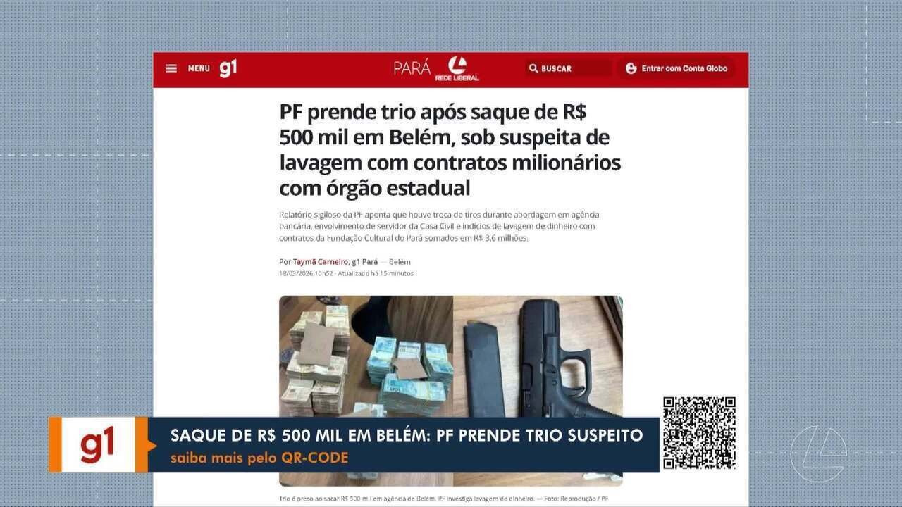 Trio é preso ao sacar R$ 500 mil em agência de Belém. PF investiga lavagem de dinheiro.