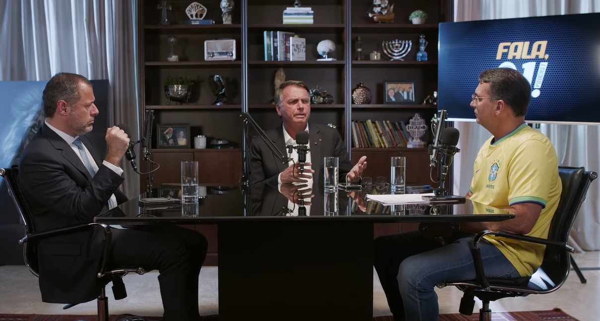 Além do ex-mandatário, estavam presentes o senador Flávio Bolsonaro (PL-RJ), advogado Paulo Bueno e de forma remota seu outro filho de quem falava, Carlos.