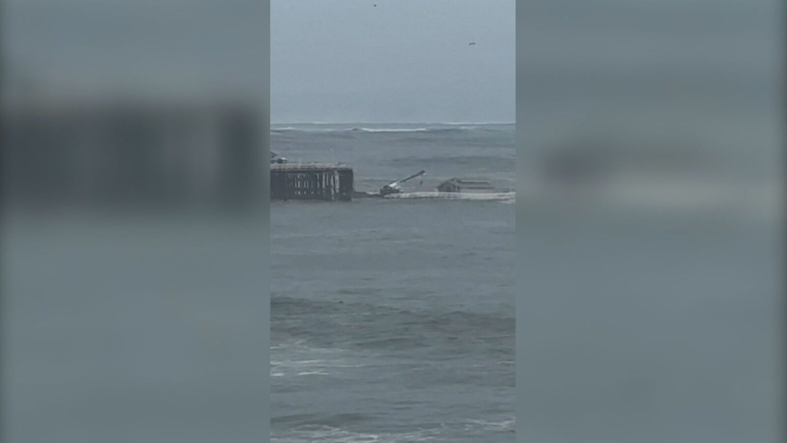 Imagens mostram a extremidade do cais flutuando no oceano.