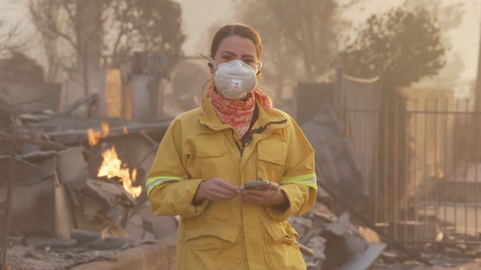 “Esse bairro inteiro está completamente destruído por esse incêndio”, relatou a jornalista.