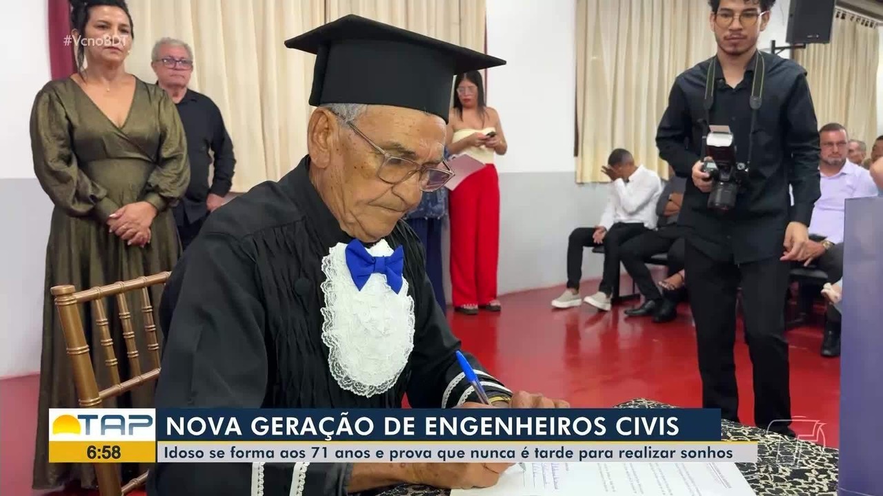 A formatura de uma turma de Engenharia Civil, em Santarém, oeste do Pará, foi marcada por uma história que chamou a atenção do público e dos próprios colegas. Aos 71 anos, Tomaz Ferreira concluiu o curso e recebeu a carteirinha profissional, simbolizando o início oficial de sua atuação como engenheiro civil.