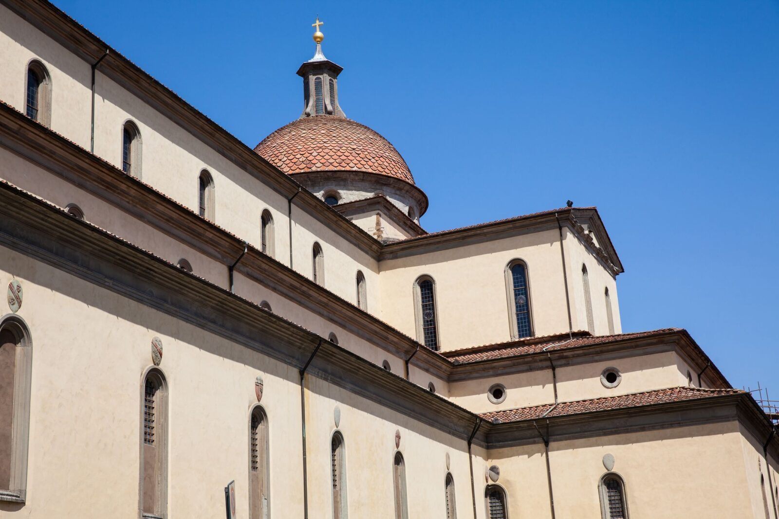 Michelangelo viveu e estudou lá, e o complexo atual, do outro lado do rio Arno, em frente ao centro histórico de Florença, ainda abriga o crucifixo de madeira esculpido pelo mestre renascentista para a sua basílica.