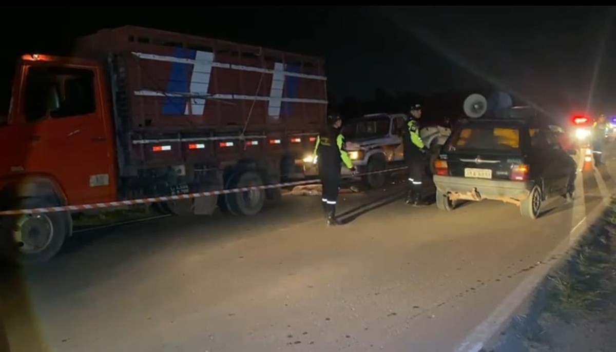 No momento que a vítima estava amarrando uma corda do caminhão para a caminhonete, um terceiro veículo em alta velocidade bateu na caminhonete, provocando o acidente.