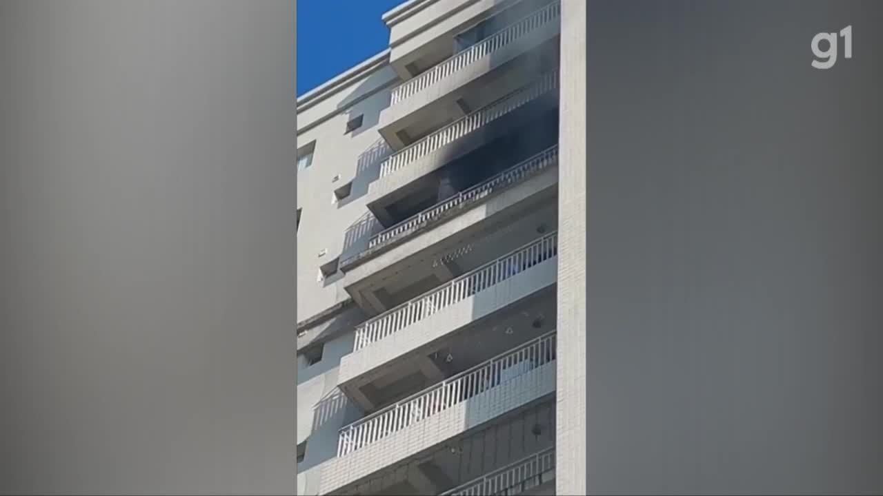 Imagens divulgadas nas redes sociais mostram uma densa nuvem de fumaça saindo do local. Incêndio registrado em apartamento nesta segunda-feira (16).