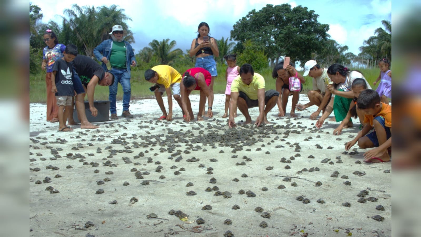 Lar Santarém Lago Juruti Velho recebe 1.173 filhotes de tracajá durante soltura em comunidade