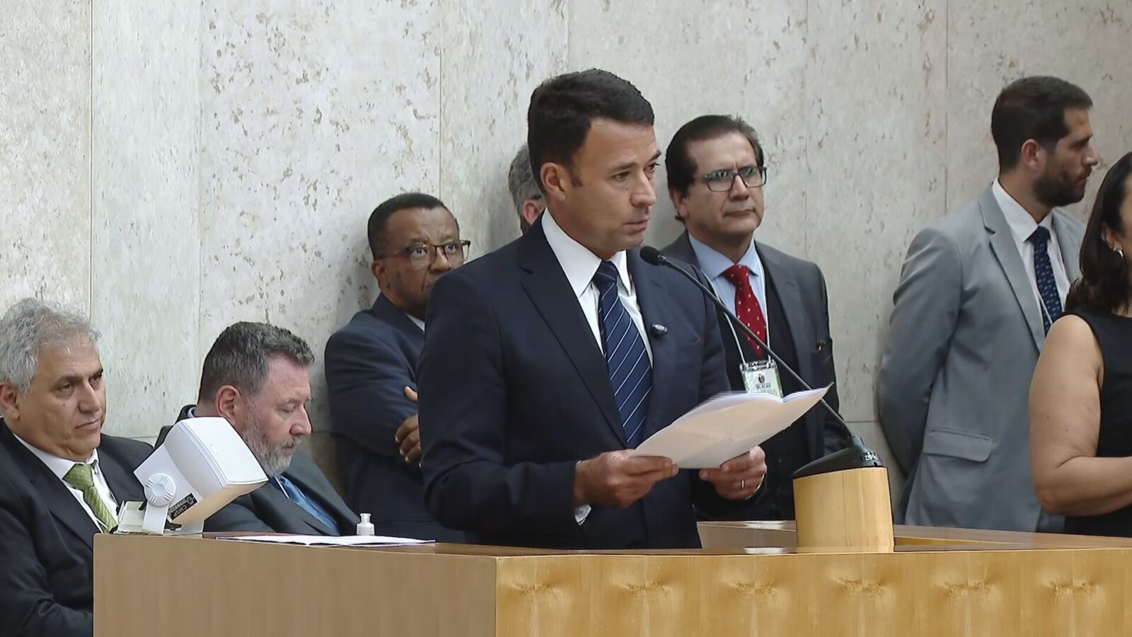 “[Agradeço] ao [ex] presidente Bolsonaro, por me confiar em duas missões, a Ceagesp [Companhia de Entrepostos e Armazéns Gerais de São Paulo] e a vice-prefeitura da cidade mais importante do país”, declarou Mello Araújo na cerimônia desta quarta-feira (1º) na Câmara Municipal.