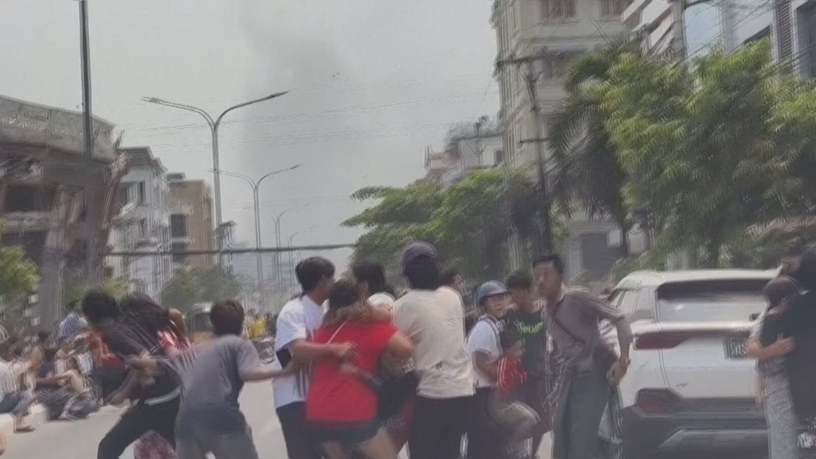 Equipes de resgate estrangeiras chegaram a Mianmar neste domingo para auxiliar o país a lidar com o desastre, e a Cruz Vermelha mianmarense afirmou que voluntários estavam administrando primeiros socorros e distribuindo itens como cobertores, lonas e kits de higiene.