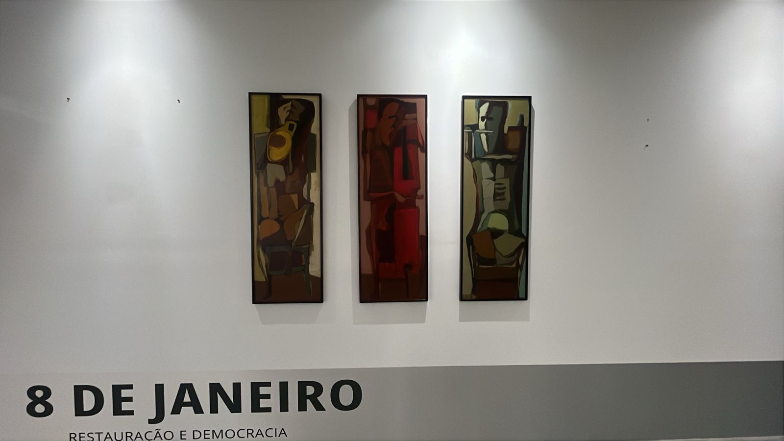 A exposição, denominada “8 de janeiro: restauração e democracia”, também apresenta registros dos processos de restauração das obras de arte vandalizadas.