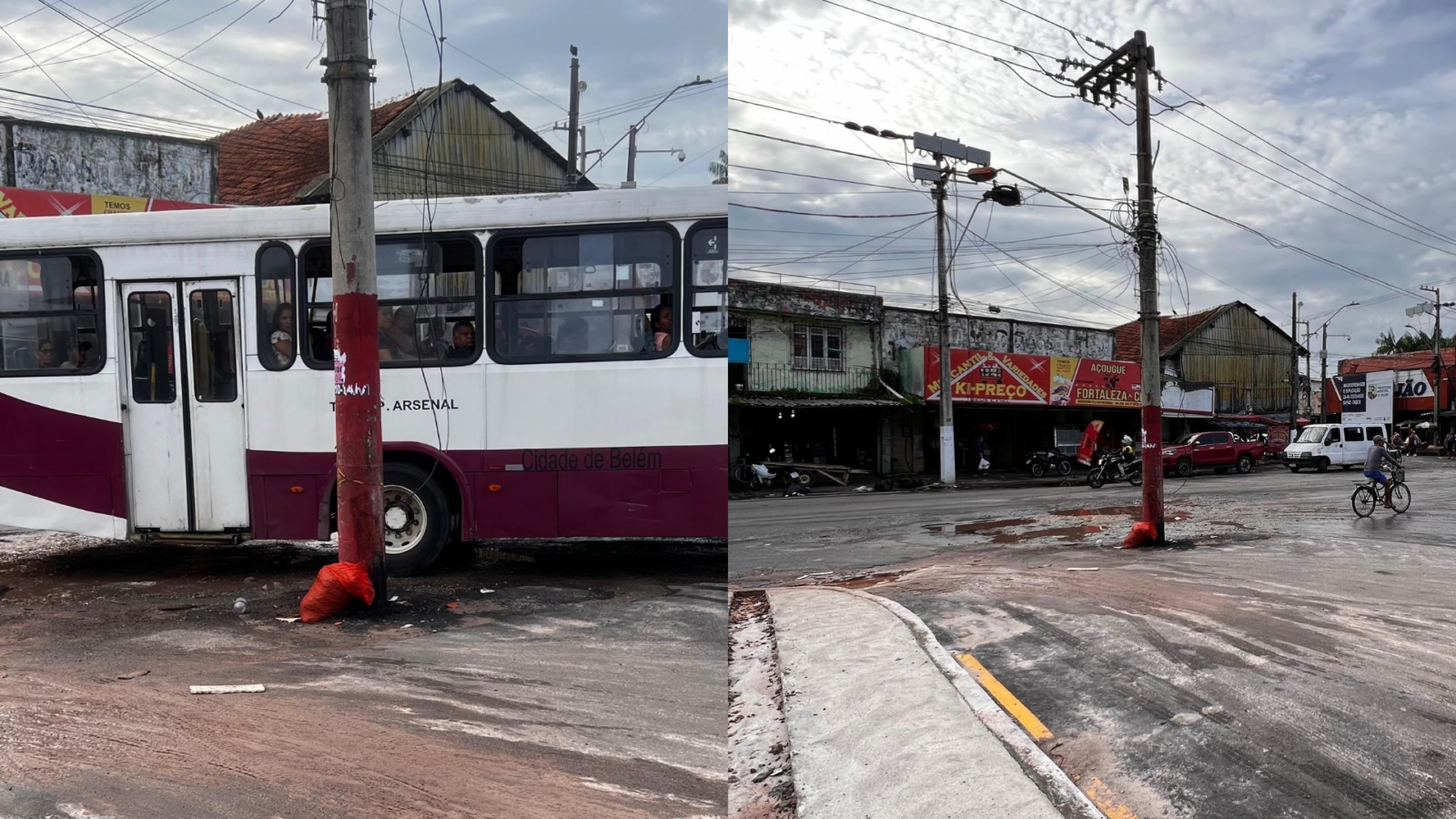 Caso curioso ocorre no Jurunas, bairro da capital paraense. Poste está na parte do asfalto que liga a avenida Bernardo Sayão à Fernando Guilhon, vias movimentadas da cidade. Ônibus passa rente ao poste para acessar à avenida Bernardo Sayão.