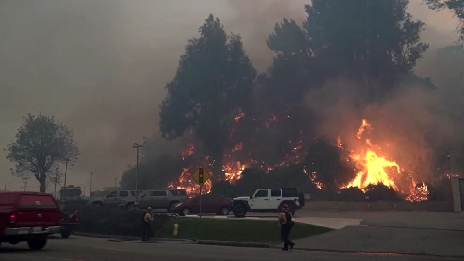 Vídeos mostram que muitas das pessoas que deixaram a região foram forçadas a abandonar seus carros enquanto tentavam fugir do bairro litorâneo entre Santa Monica e Malibu.