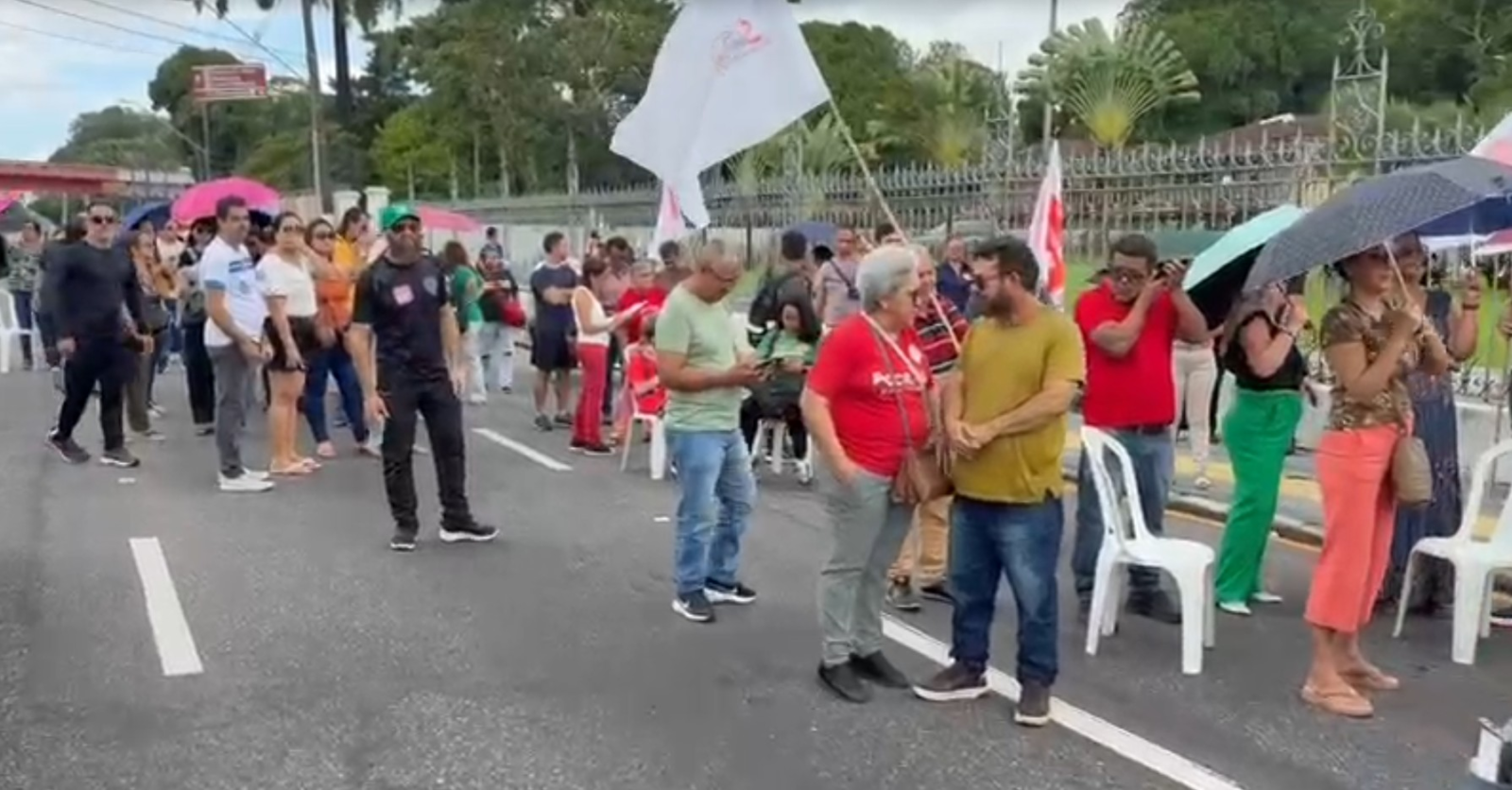 Os manifestantes saíram em caminhada pela av. Dr. Freitas e fizeram um bloqueio de toda a pista entre a av. e a av. Júlio César – via já com transtornos devido à interdição para remoção de uma passarela com risco de queda.