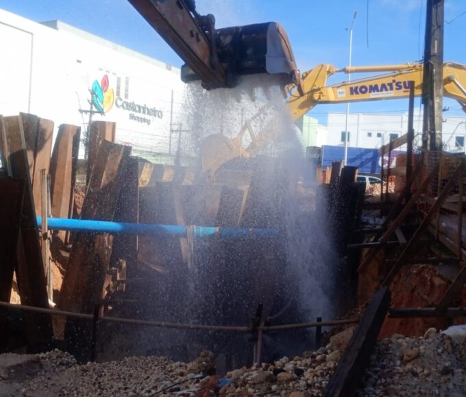 Moradores denunciam vazamento de água durante obras na BR-316, na Grande Belém