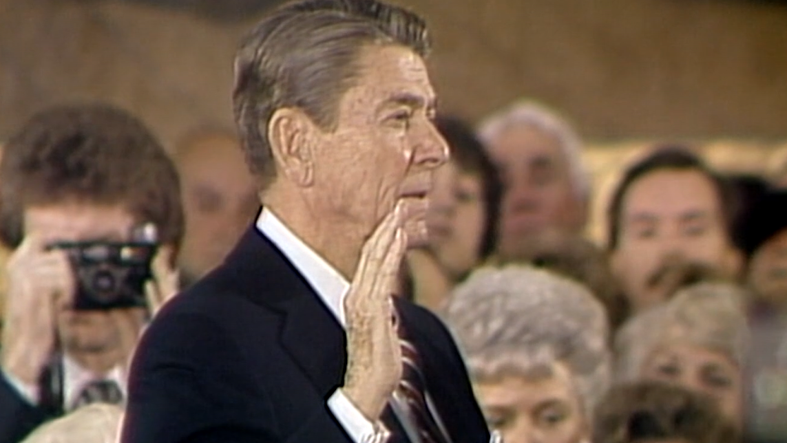 Reagan fez o juramento de posse dentro da rotunda do Capitólio. O desfile de posse foi cancelado naquela ocasião.