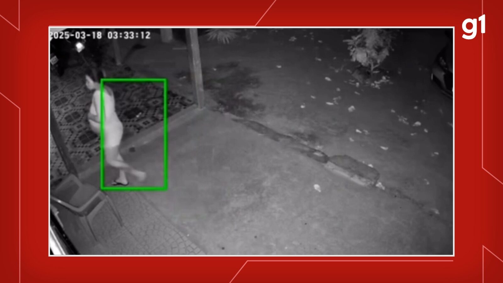 Nas imagens é possível ver a mulher no local por volta das 3h30 da madrugada. De acordo com o proprietário, a área é residencial, mas também funciona como uma pousada.